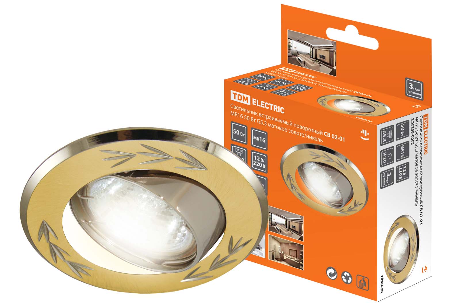 Наименование: Светильник встраиваемый поворотный СВ 02-01 MR16 50Вт G5.3 матовое золото/никель TDM