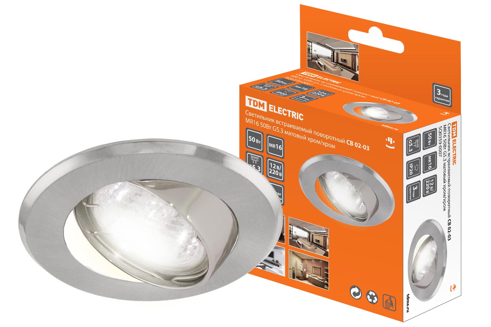 Наименование: Светильник встраиваемый поворотный СВ 02-03 MR16 50Вт G5.3 матовый хром/хром TDM
