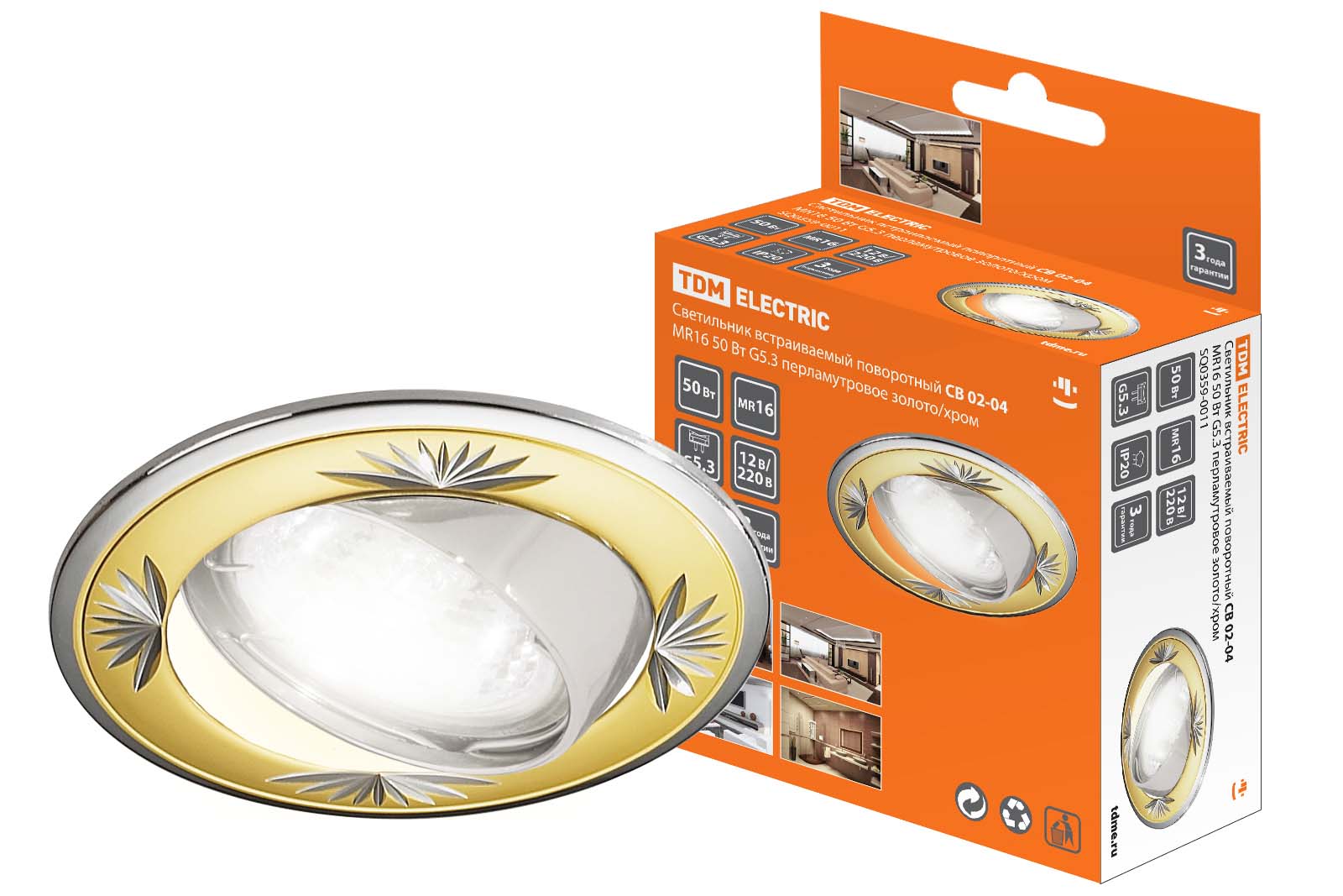 Наименование: Светильник встраиваемый поворотный СВ 02-04 MR16 50Вт G5.3 перламутровое золото/хром TDM
