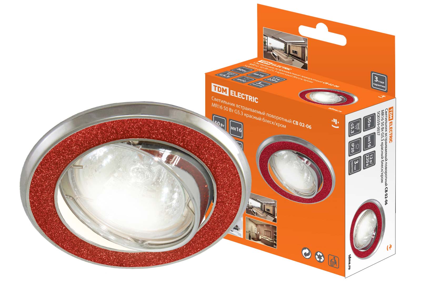 Наименование: Светильник встраиваемый поворотный СВ 02-06 MR16 50Вт G5.3 красный блеск/хром TDM