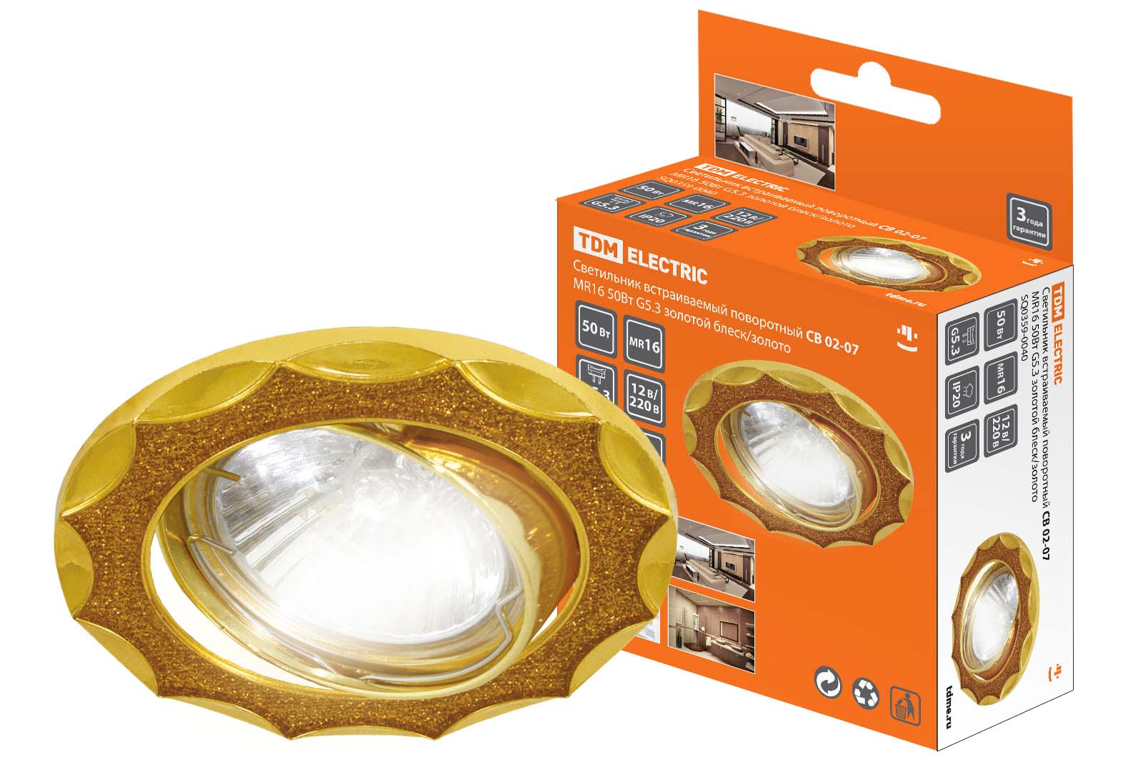 Светильник встраиваемый поворотный СВ 02-07 MR16 50Вт G5.3 золотой блеск/золото TDM