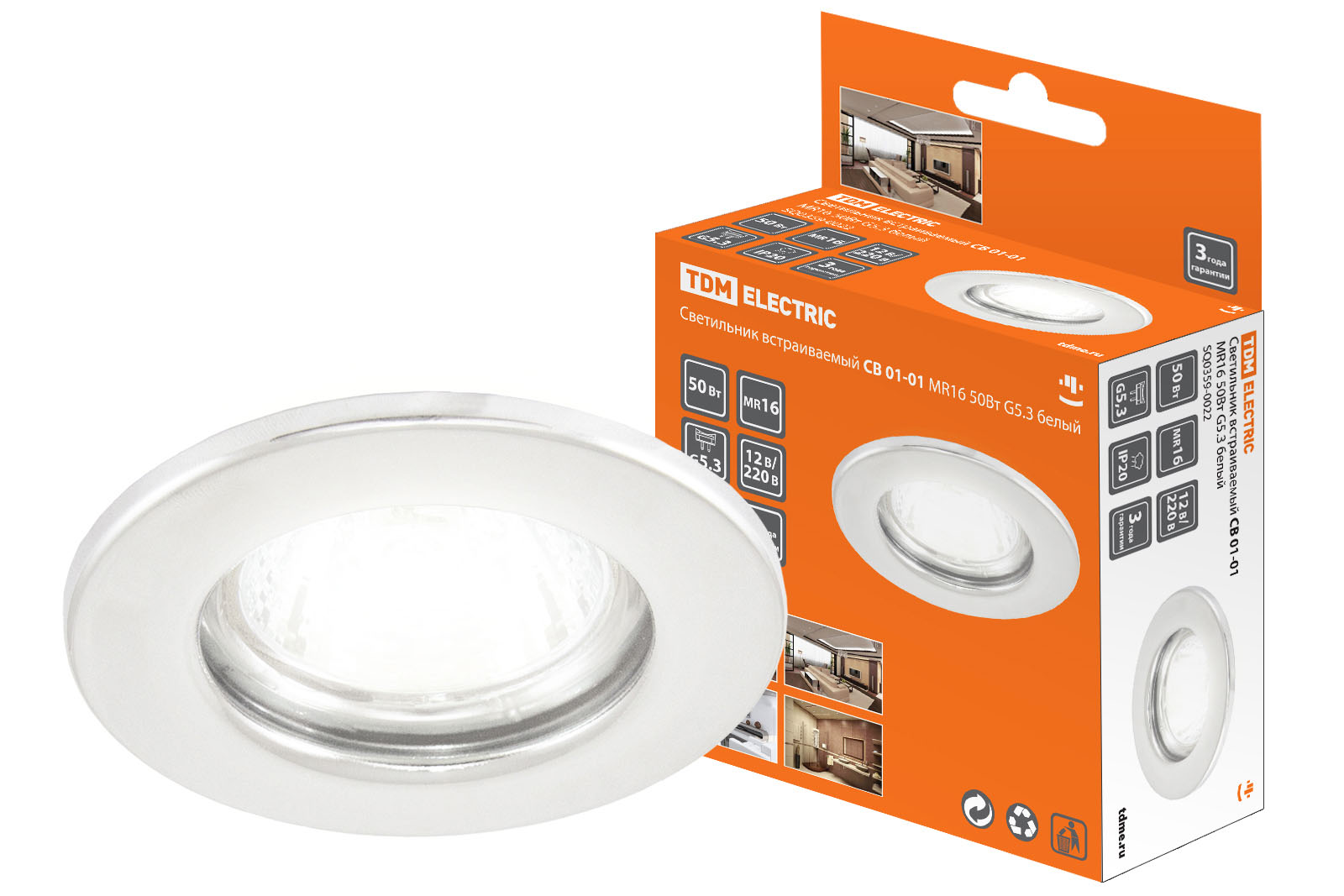 Наименование: Светильник встраиваемый СВ 01-01 MR16 50Вт G5.3 белый TDM