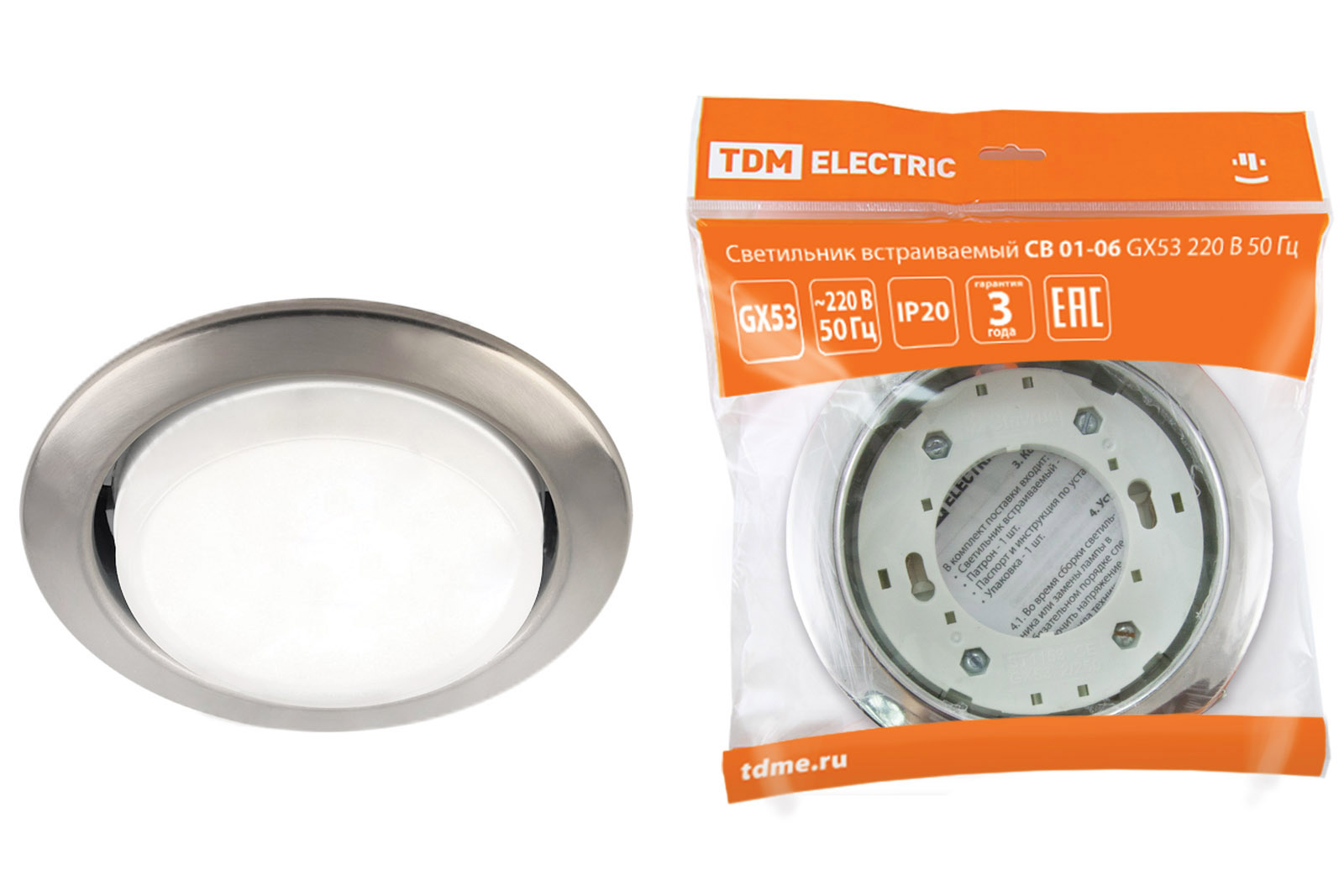 Наименование: Светильник встраиваемый СВ 01-06 GX53 220 В 50 Гц сатин никель TDM