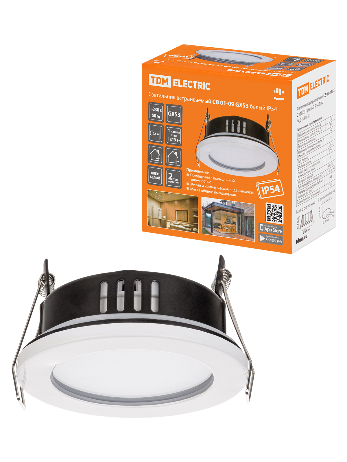 Наименование: Светильник встраиваемый СВ 01-09 GX53 230 В 50 Гц белый IP54 TDM