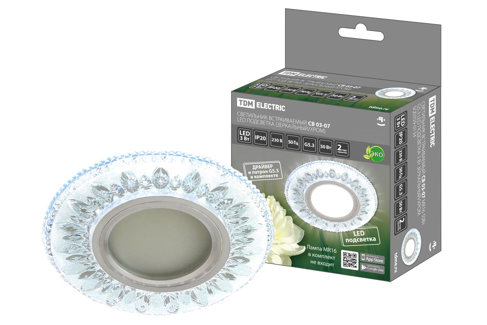 Наименование: Светильник встраиваемый СВ 03-07 MR16 50Вт G5.3 LED подсветка 3 Вт зеркальный/хром TDM