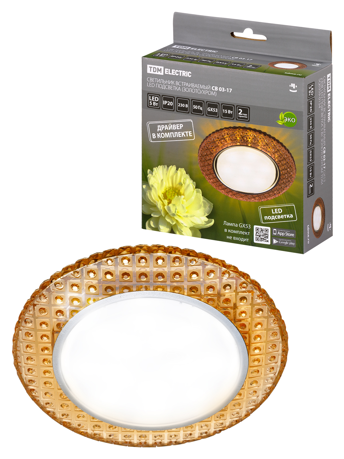 Наименование: Светильник встраиваемый СВ 03-17 GХ53 230В LED подсветка 5 Вт золото/хром TDM