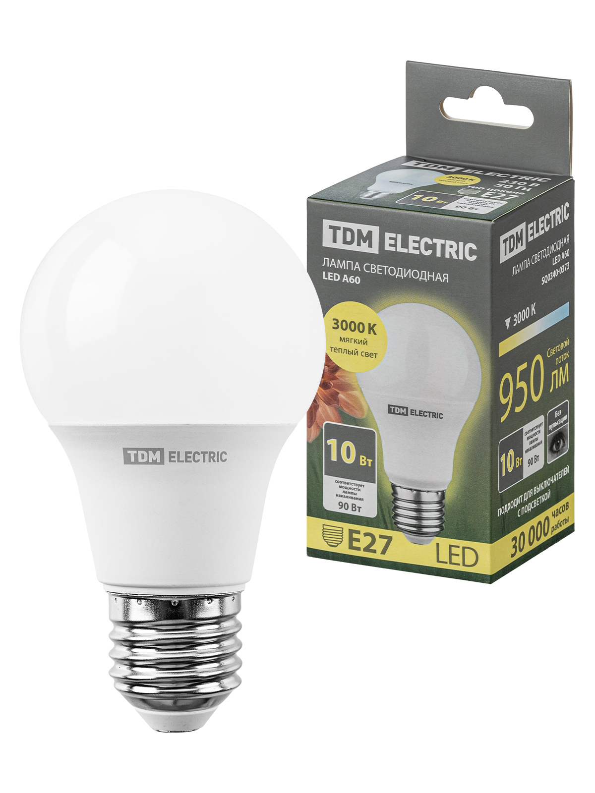 Наименование: Лампа светодиодная А60 10 Вт, 230 В, 3000 К, E27 TDM