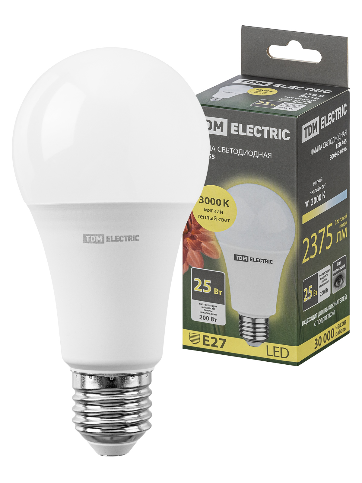 Наименование: Лампа светодиодная А65 25 Вт, 230 В, 3000 К, E27 TDM