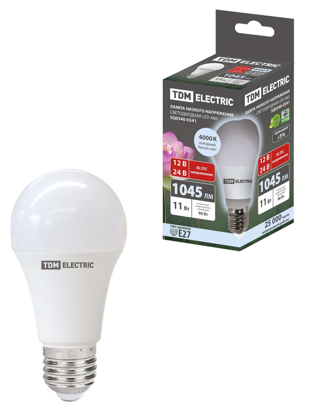Наименование: Лампа светодиодная низковольтная МО A60 11 Вт, 12-24 В, 4000 К TDM