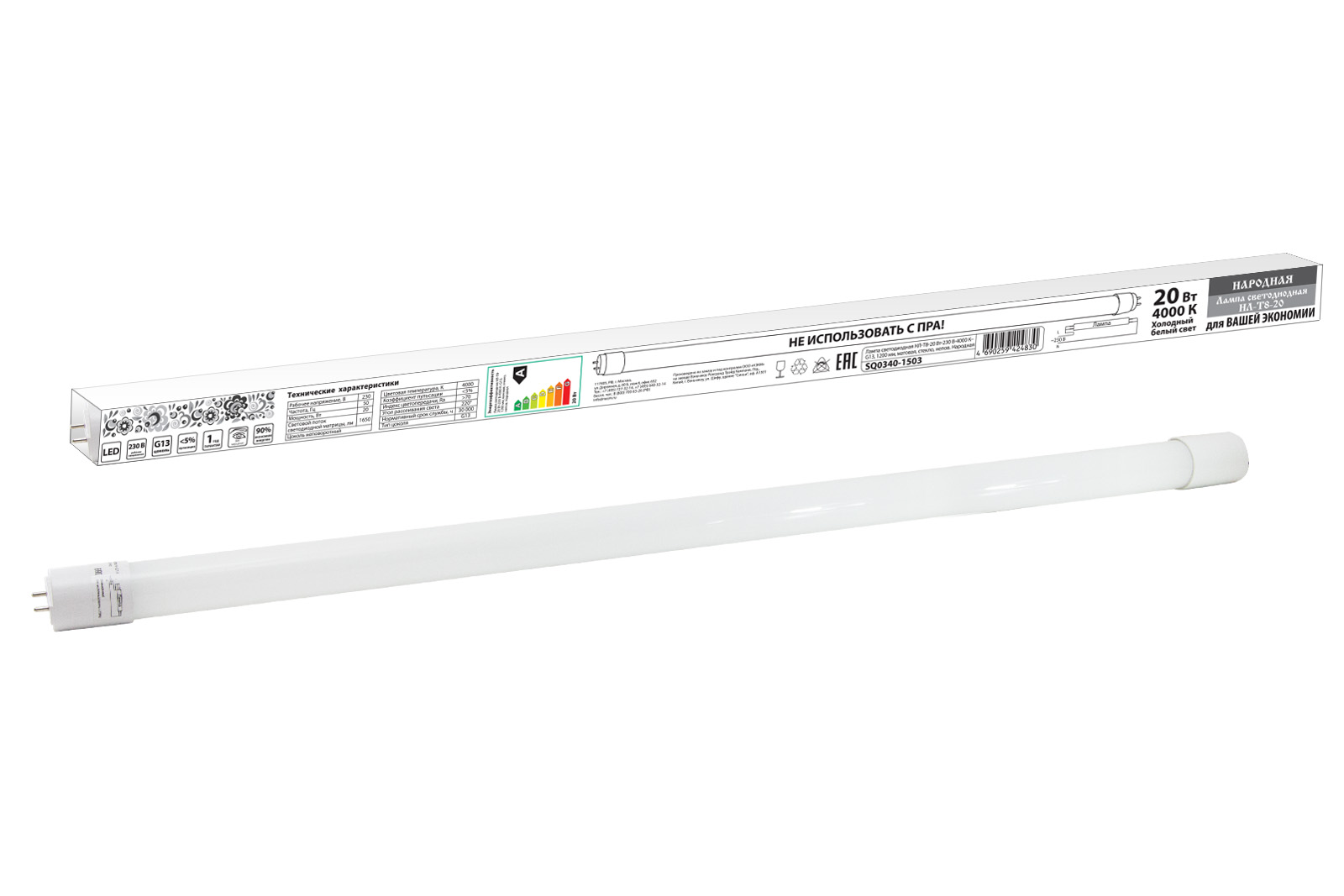 Наименование: Лампа светодиодная НЛ-Т8-20 Вт-230 В-4000 К–G13, 1200 мм, матовая, стекло, непов. Народная