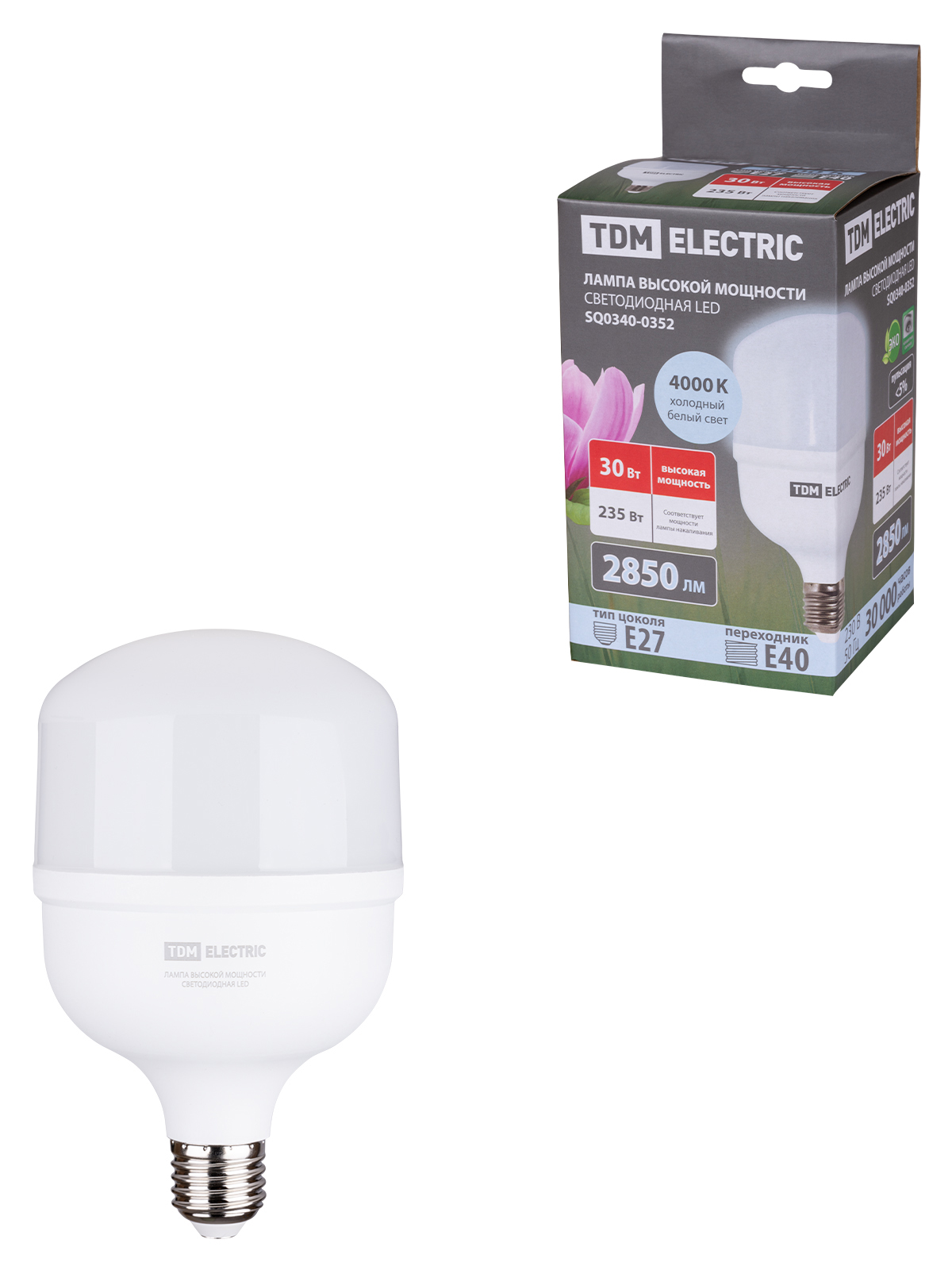 Наименование: Лампа светодиодная T 30 Вт, 230 В, 4000 К, E27 (100x165 мм) TDM