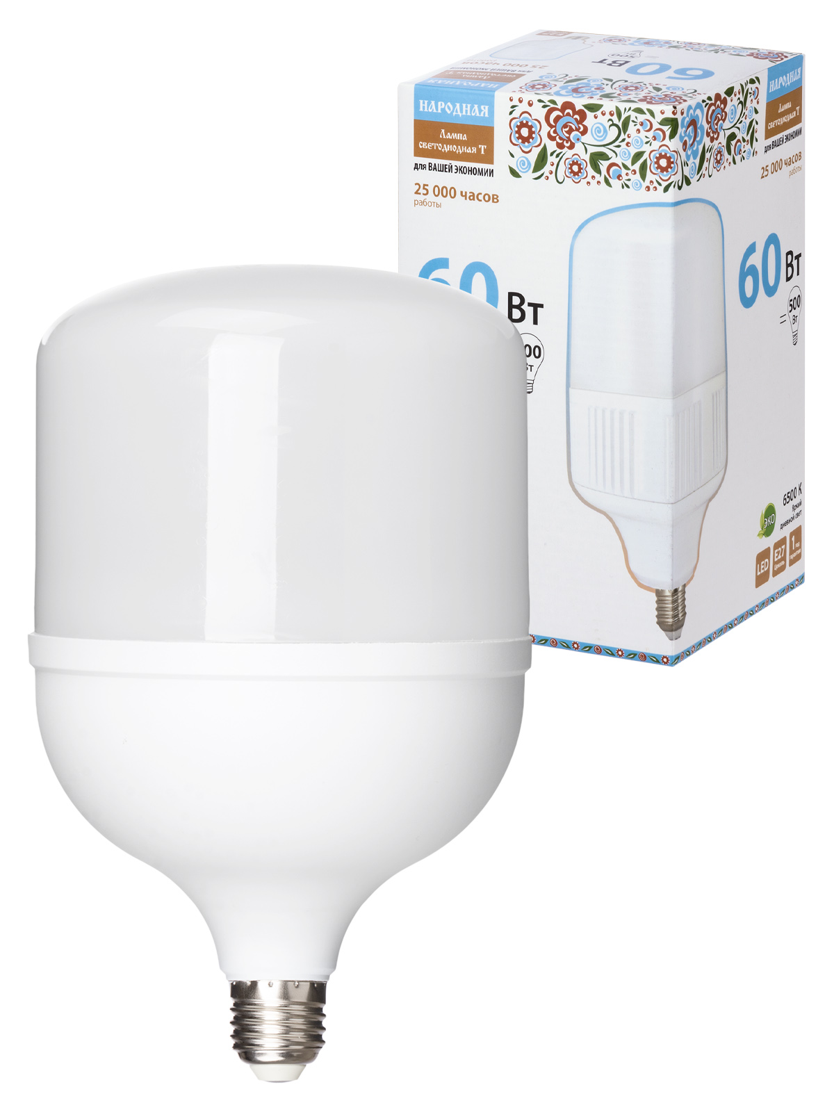 Наименование: Лампа светодиодная T-60 Вт-230 В-6500 К–E27 (135x225 мм) НАРОДНАЯ
