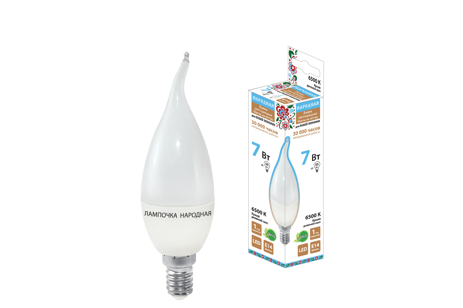 Лампа светодиодная WFС37-7 Вт-230 В-6500 К–E14 (свеча на ветру) Народная