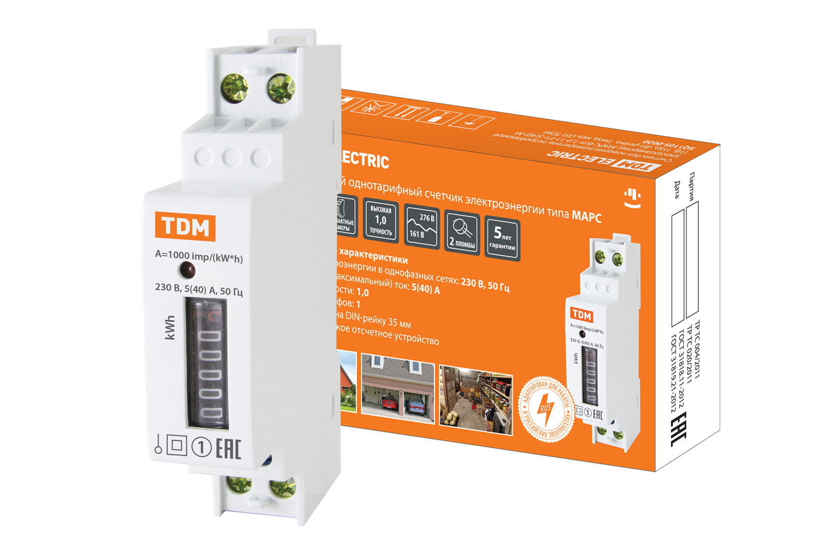 Наименование: Счетчик без поверки МАРС-б/п-1,0-11-Р1-5(40)-М (1ф, 1тар, din-рейка, 1мод, мех.ОУ) TDM