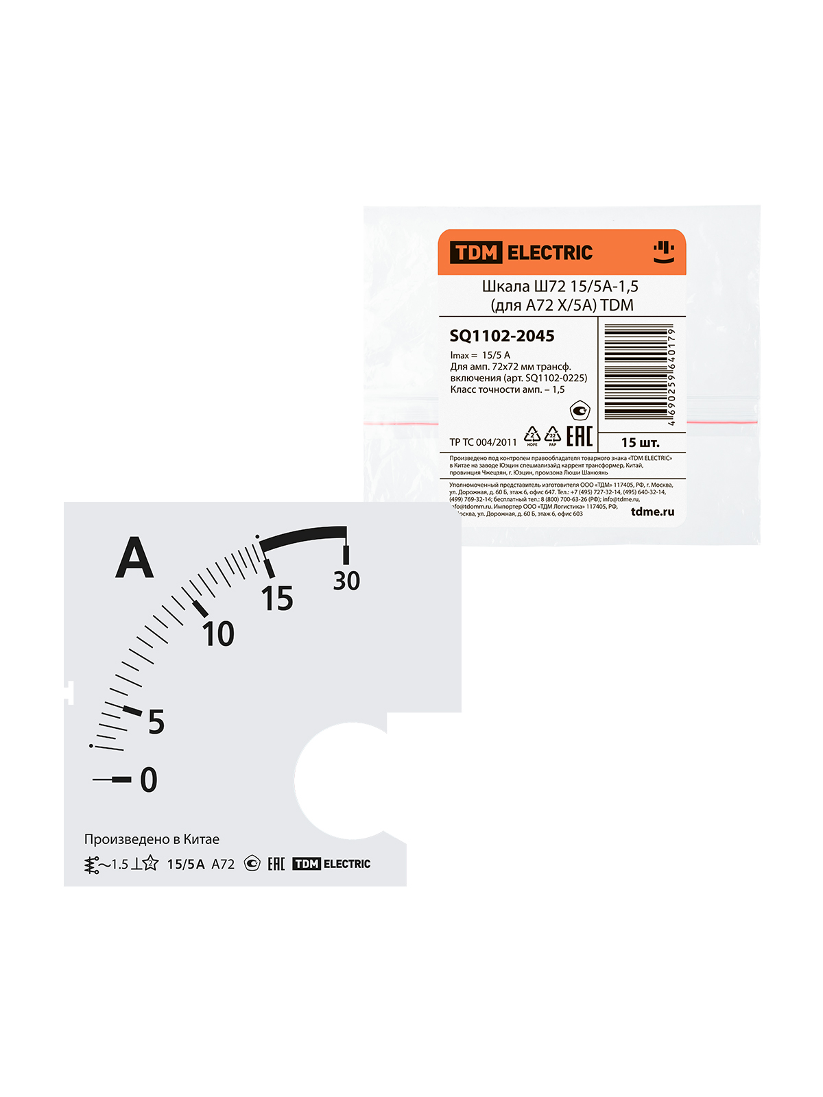 Наименование: Шкала Ш72 15/5А-1,5 (для А72 Х/5А) TDM