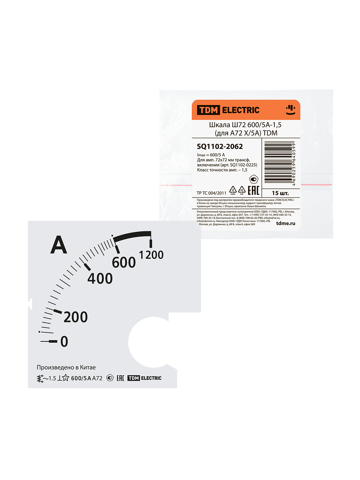 Наименование: Шкала Ш72 600/5А-1,5 (для А72 Х/5А) TDM