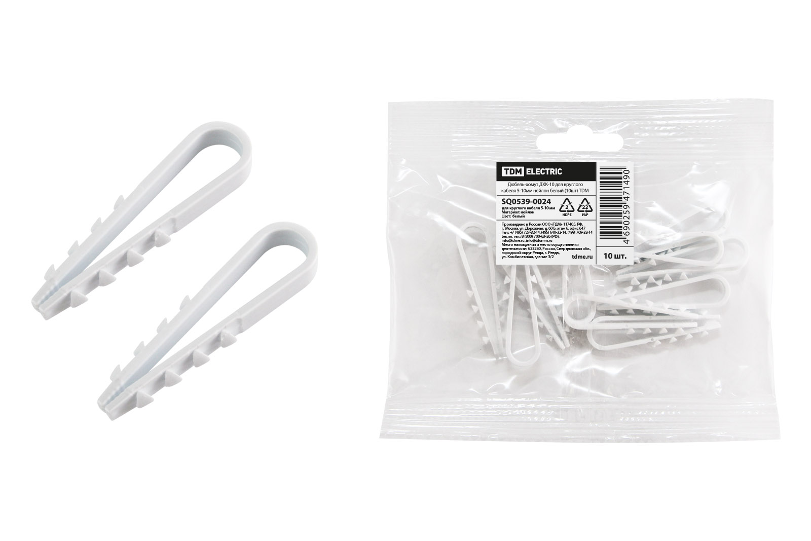 Наименование: Дюбель-хомут ДХК-10 для круглого кабеля 5-10мм нейлон белый (10шт) TDM