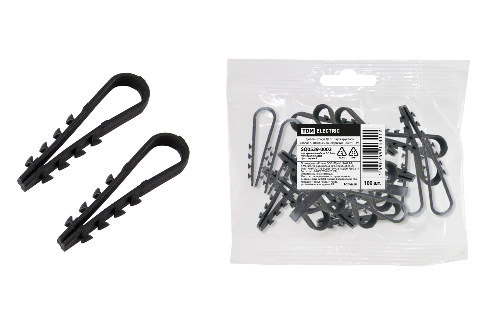 Наименование: Дюбель-хомут ДХК-10 для круглого кабеля 5-10мм нейлон черный (100шт) TDM