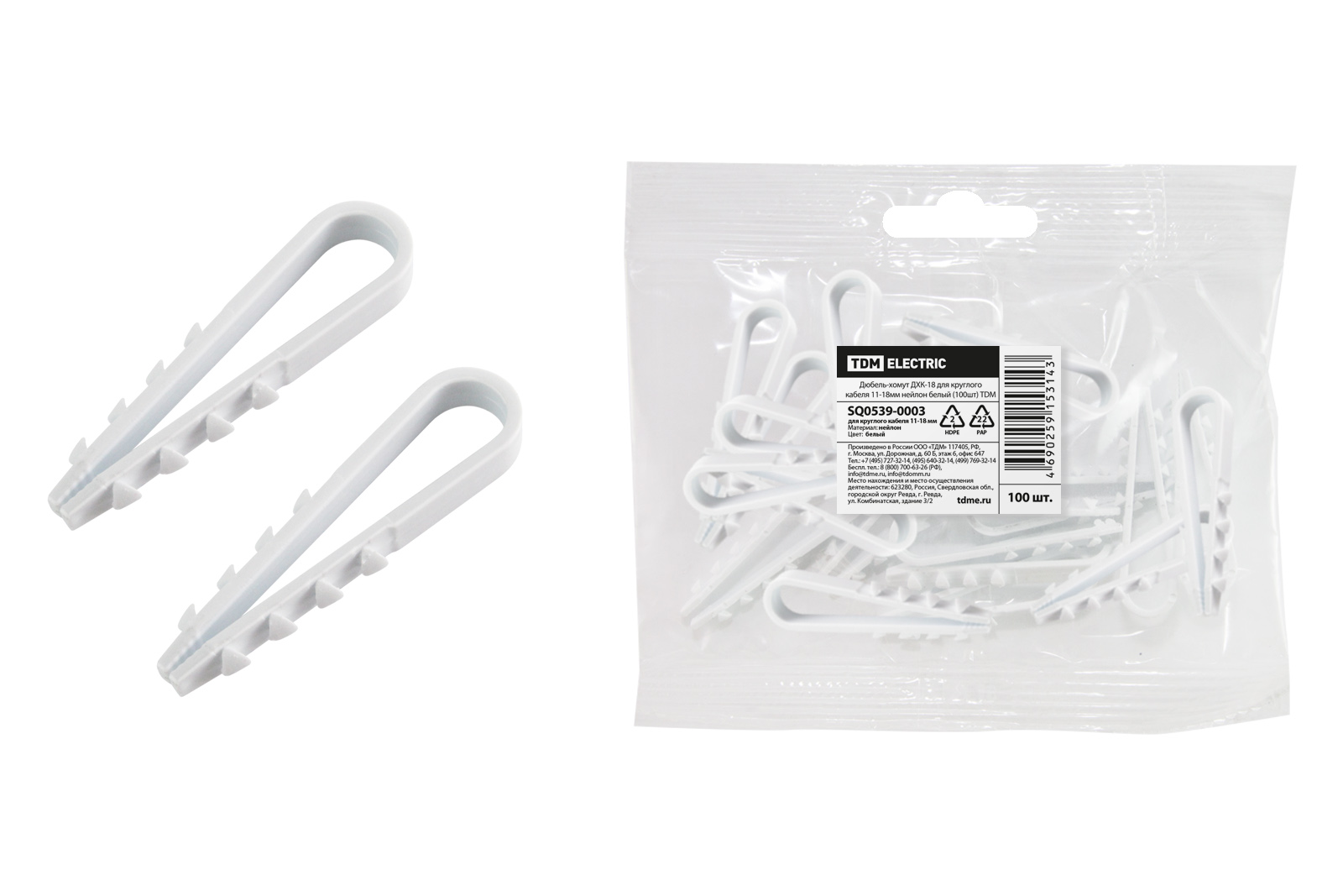 Наименование: Дюбель-хомут ДХК-18 для круглого кабеля 11-18мм нейлон белый (100шт) TDM