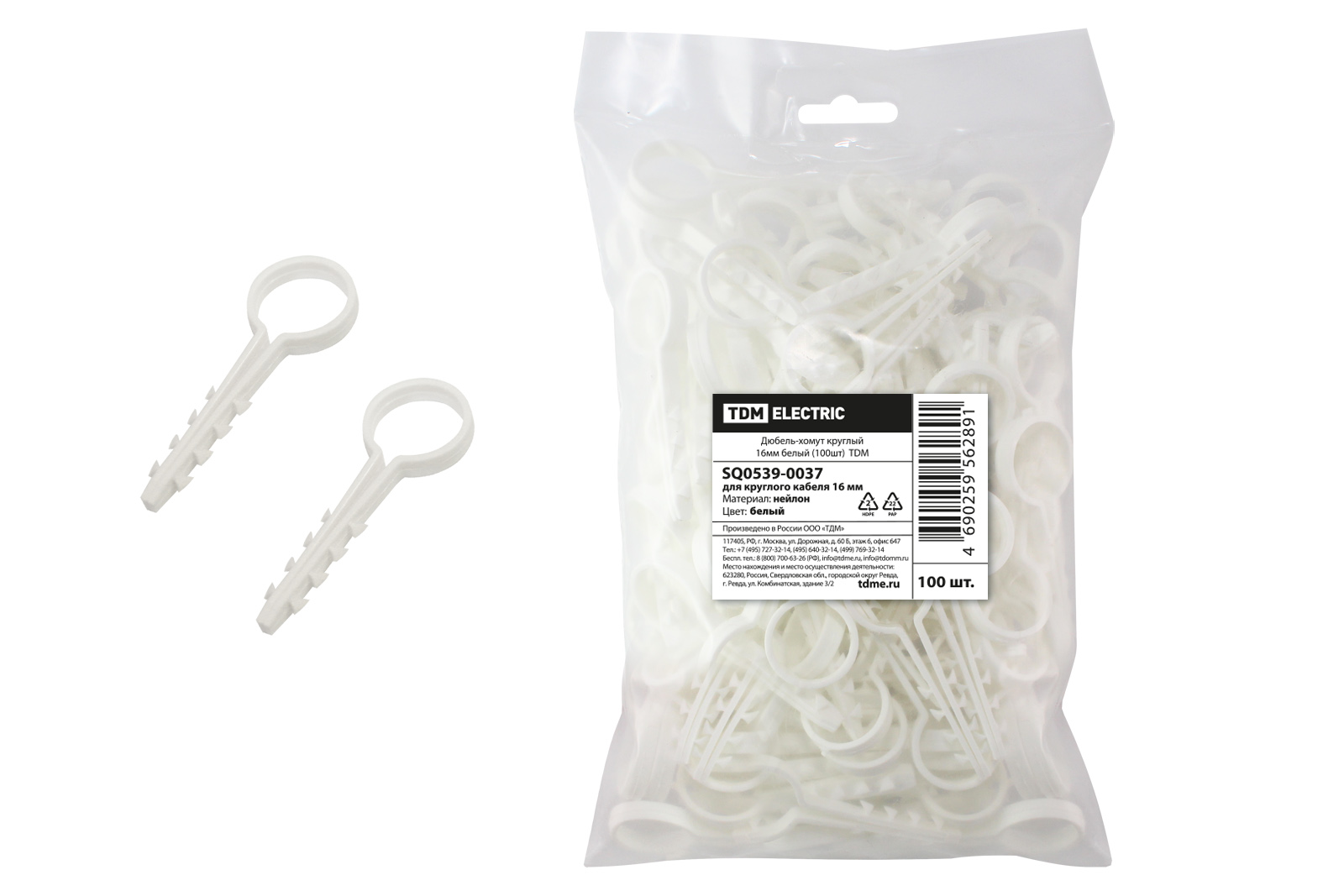 Наименование: Дюбель-хомут круглый 16мм белый (100шт) TDM