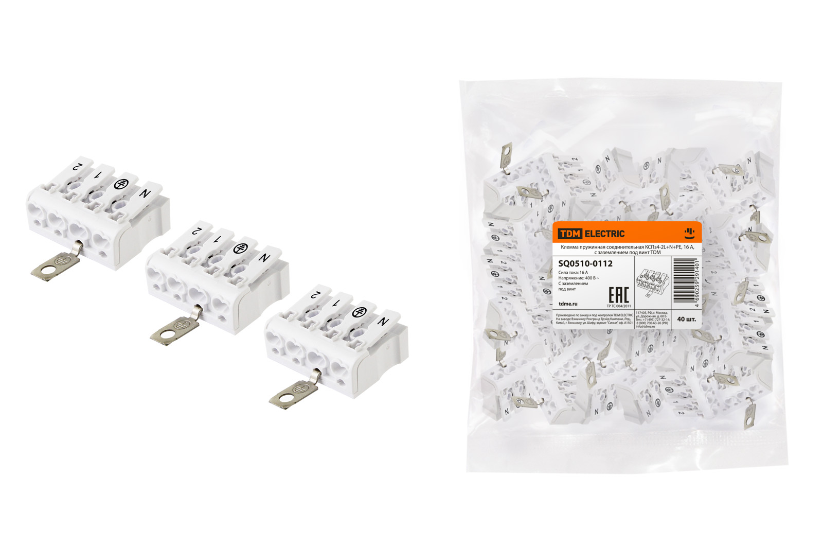 Наименование: Клемма пружинная соединительная КСПз4-2L+N+PE, 16 A, с заземлением подвинт TDM