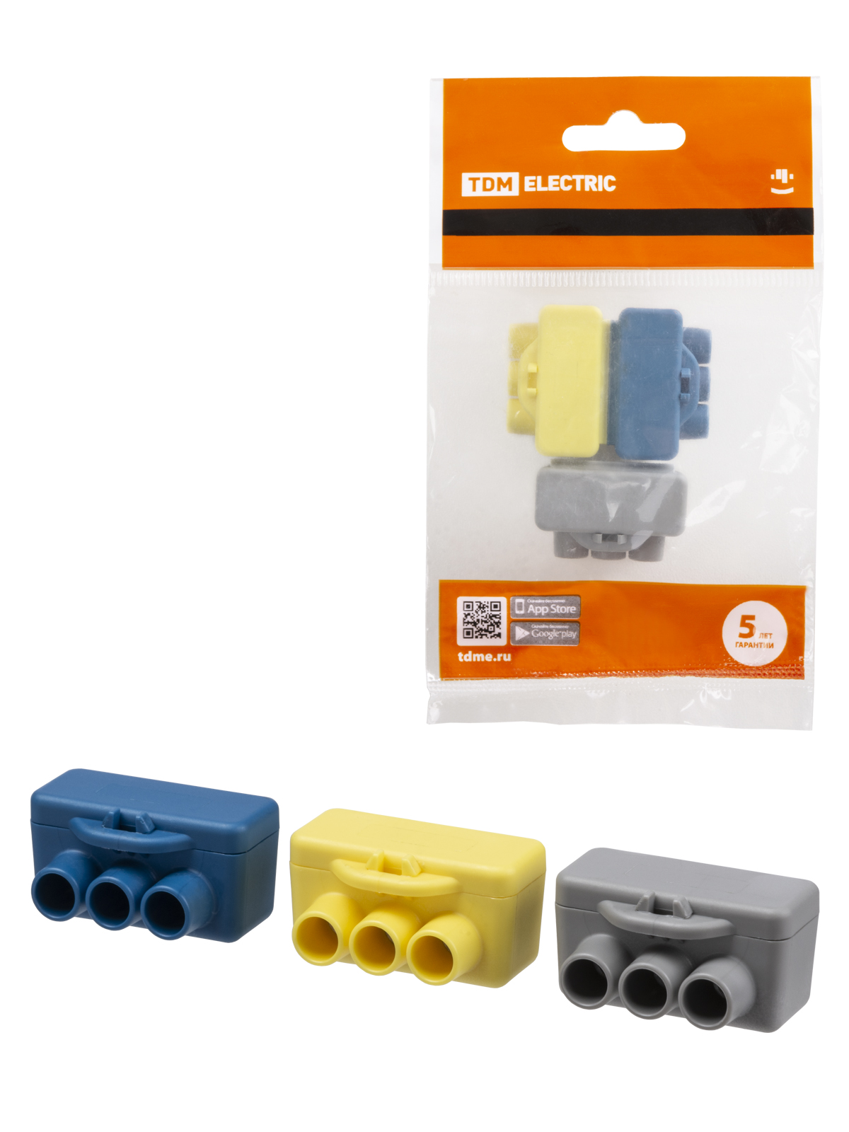 Наименование: Набор клемм винтовых изолированных КВИ-3 для Al и Cu проводов (6,0мм2) (серая, синяя, желтая) TDM