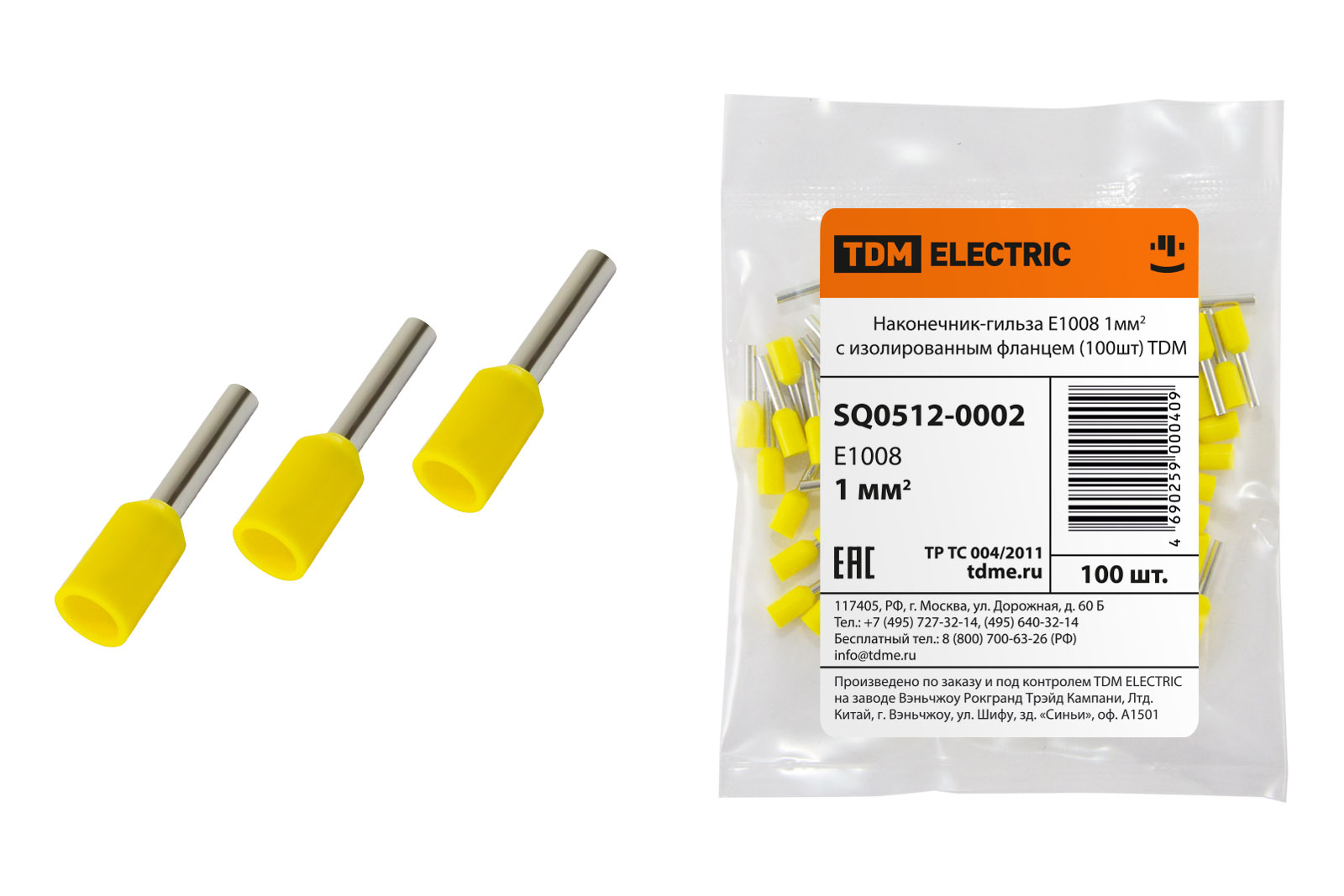 Наименование: Наконечник-гильза Е1008 1мм2 с изолированным фланцем (100шт) TDM