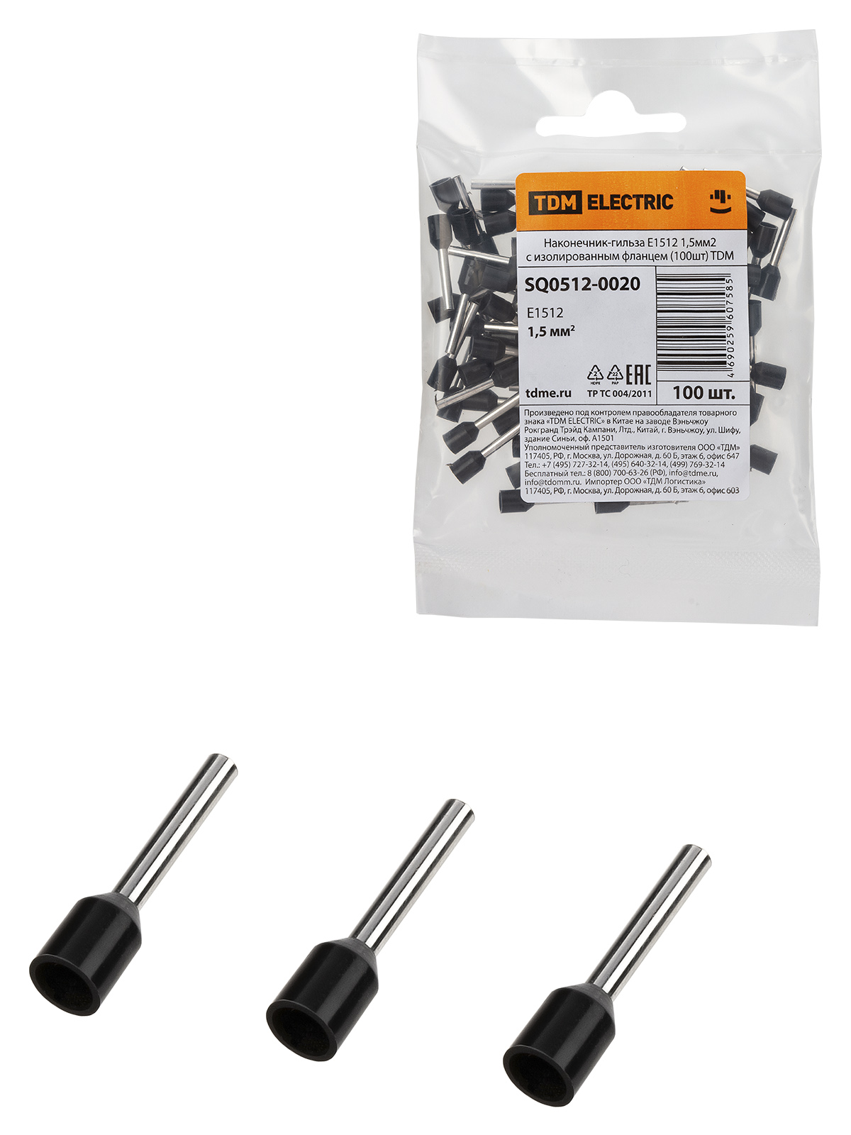 Наименование: Наконечник-гильза Е1512 1,5мм2 с изолированным фланцем (100шт) TDM