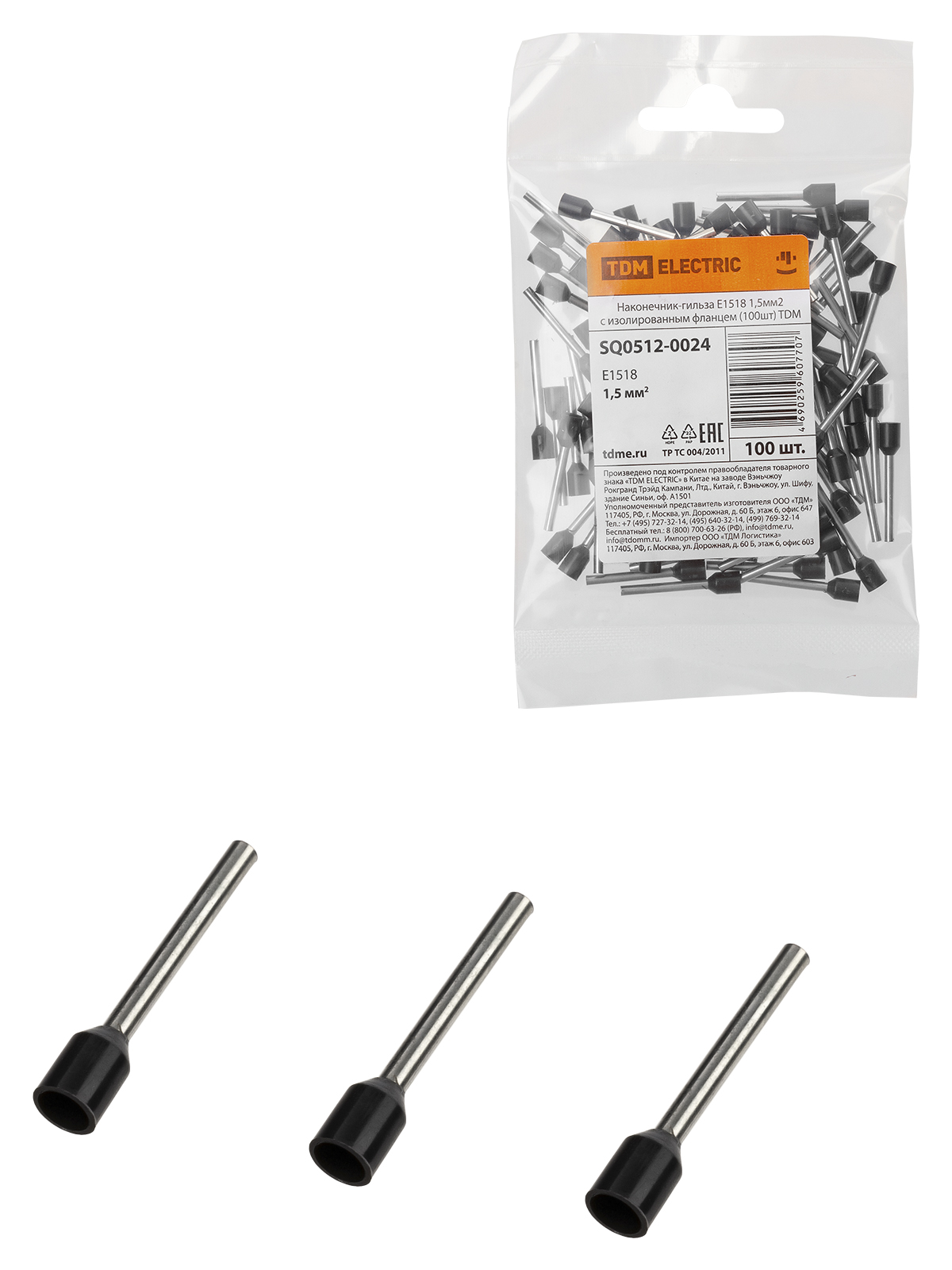 Наименование: Наконечник-гильза Е1518 1,5мм2 с изолированным фланцем (100шт) TDM