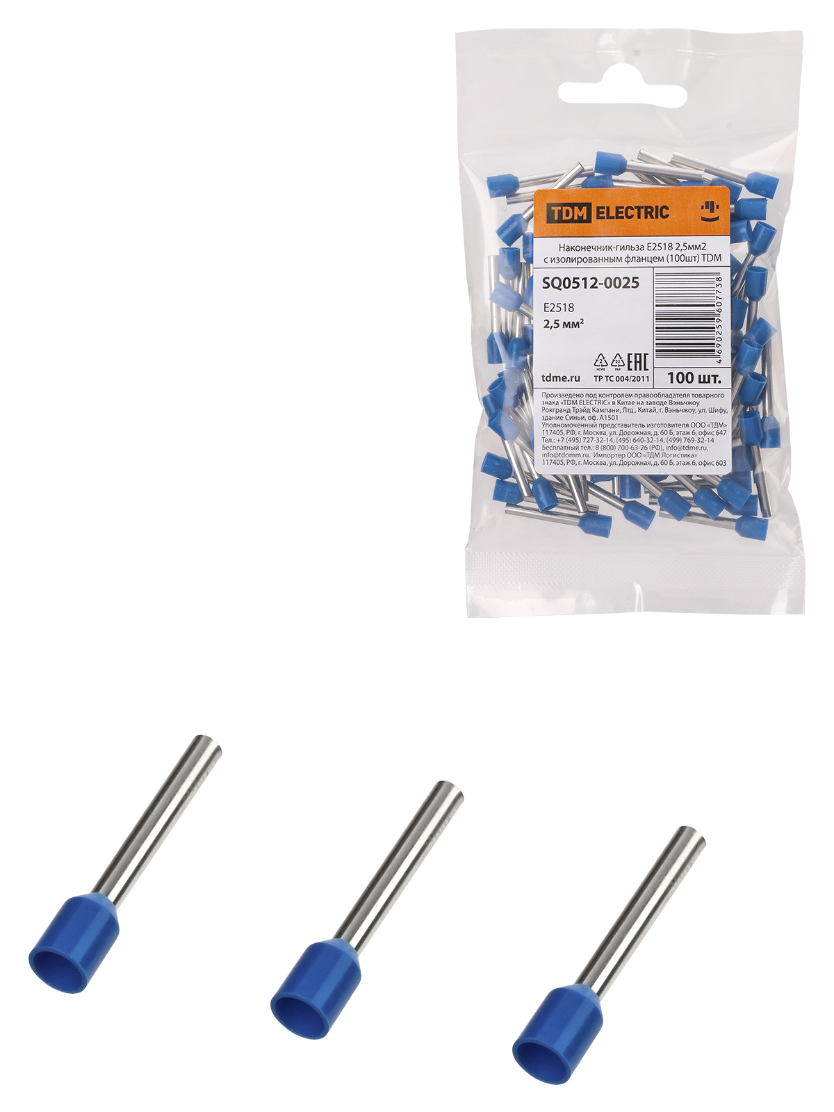 Наименование: Наконечник-гильза Е2518 2,5мм2 с изолированным фланцем (100шт) TDM