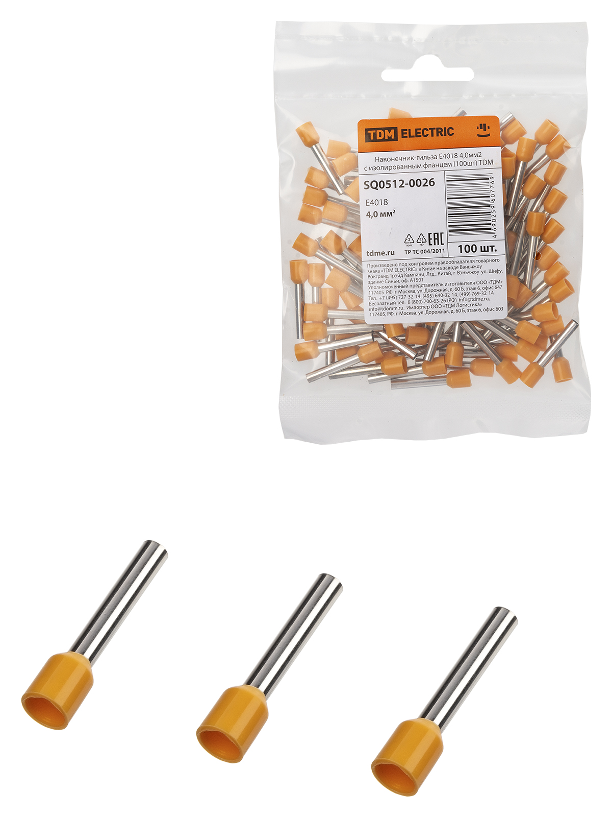 Наименование: Наконечник-гильза Е4018 4,0мм2 с изолированным фланцем (100шт) TDM