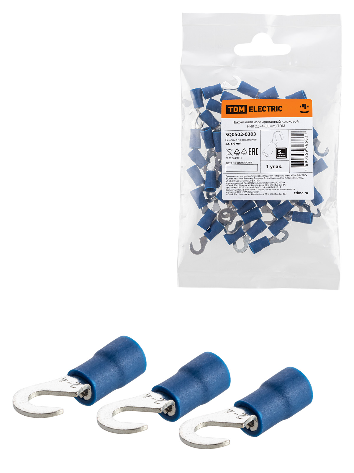 Наименование: Наконечник изолированный крюковой НИК 2,5–4 (50 шт.) TDM