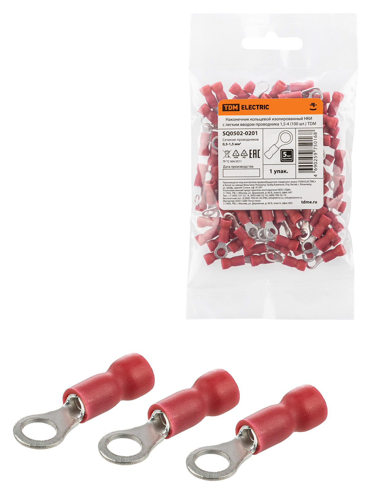 Наименование: Наконечник кольцевой изолированный НКИ с легким вводом проводника 1,5-4 (100 шт.) TDM