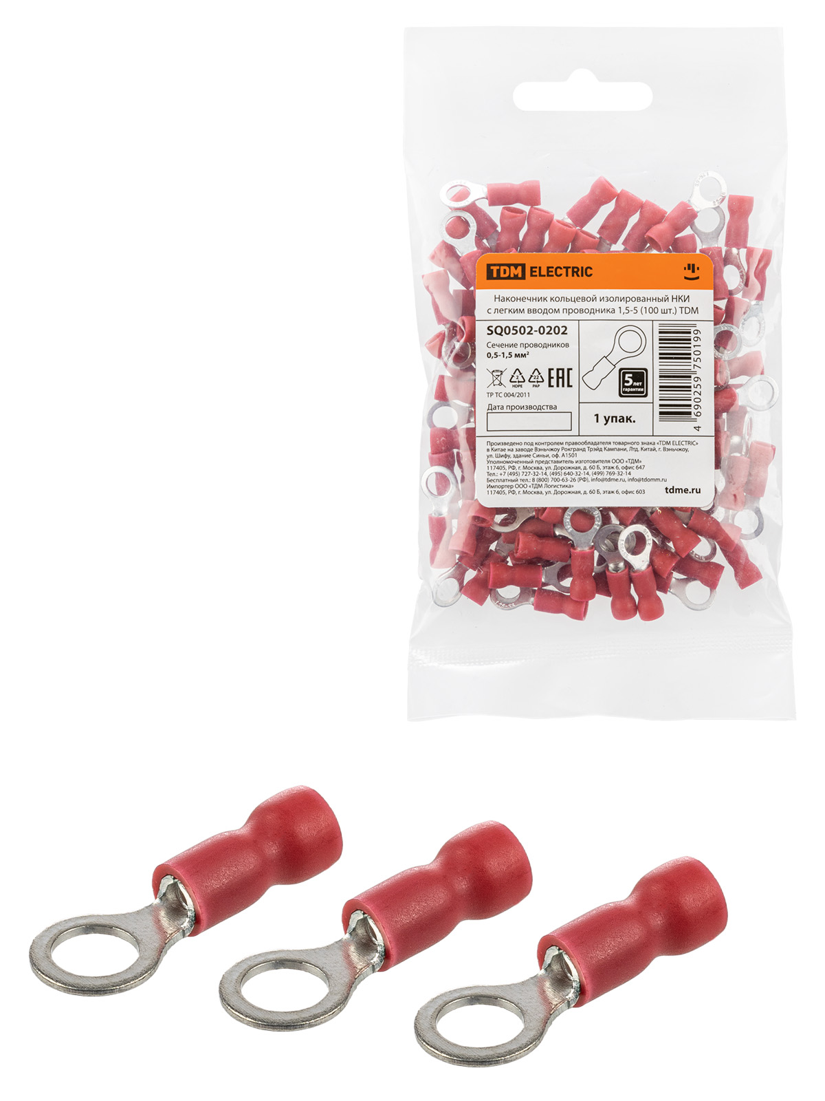 Наименование: Наконечник кольцевой изолированный НКИ с легким вводом проводника 1,5-5 (100 шт.) TDM