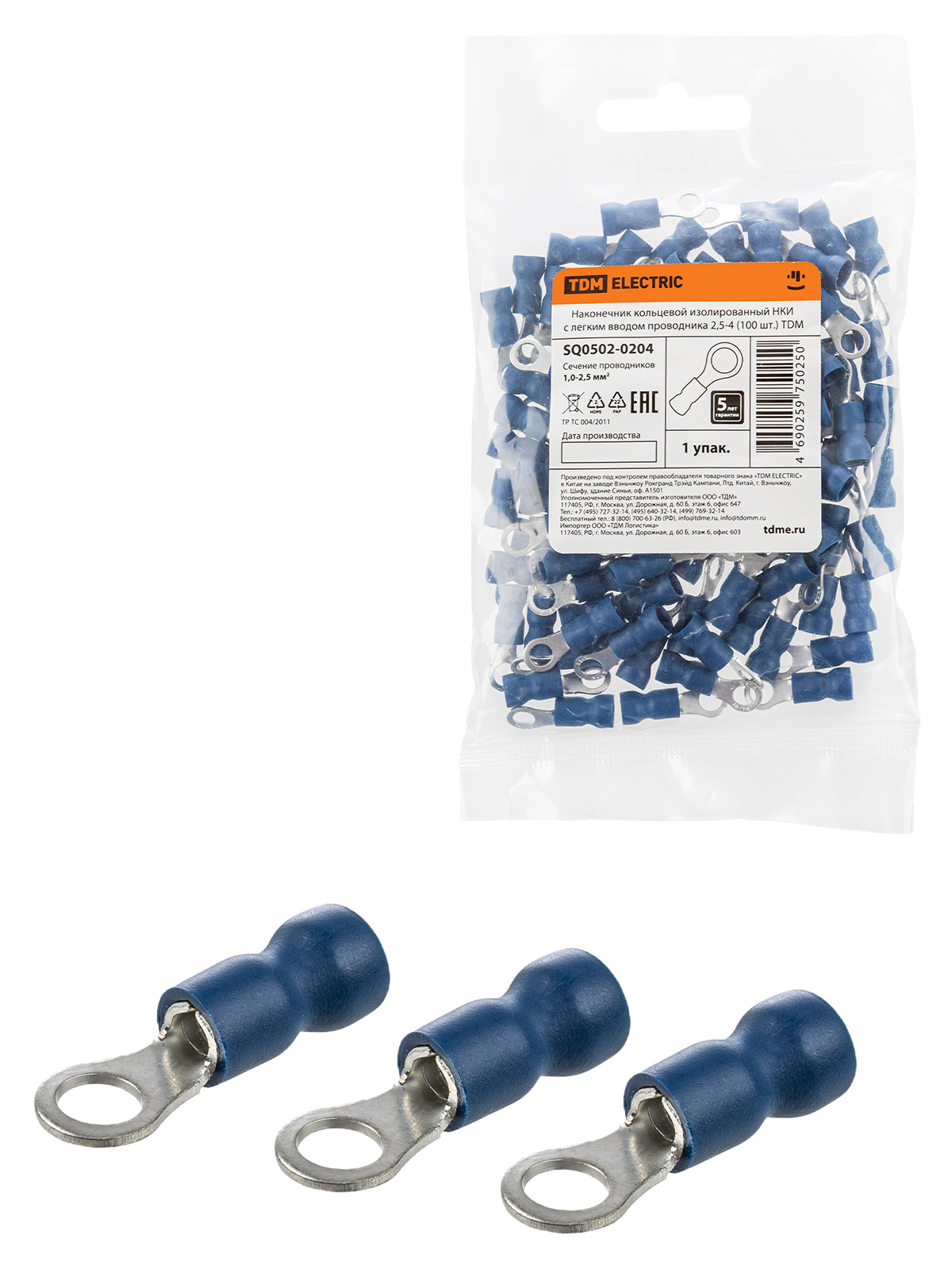 Наименование: Наконечник кольцевой изолированный НКИ с легким вводом проводника 2,5-4 (100 шт.) TDM