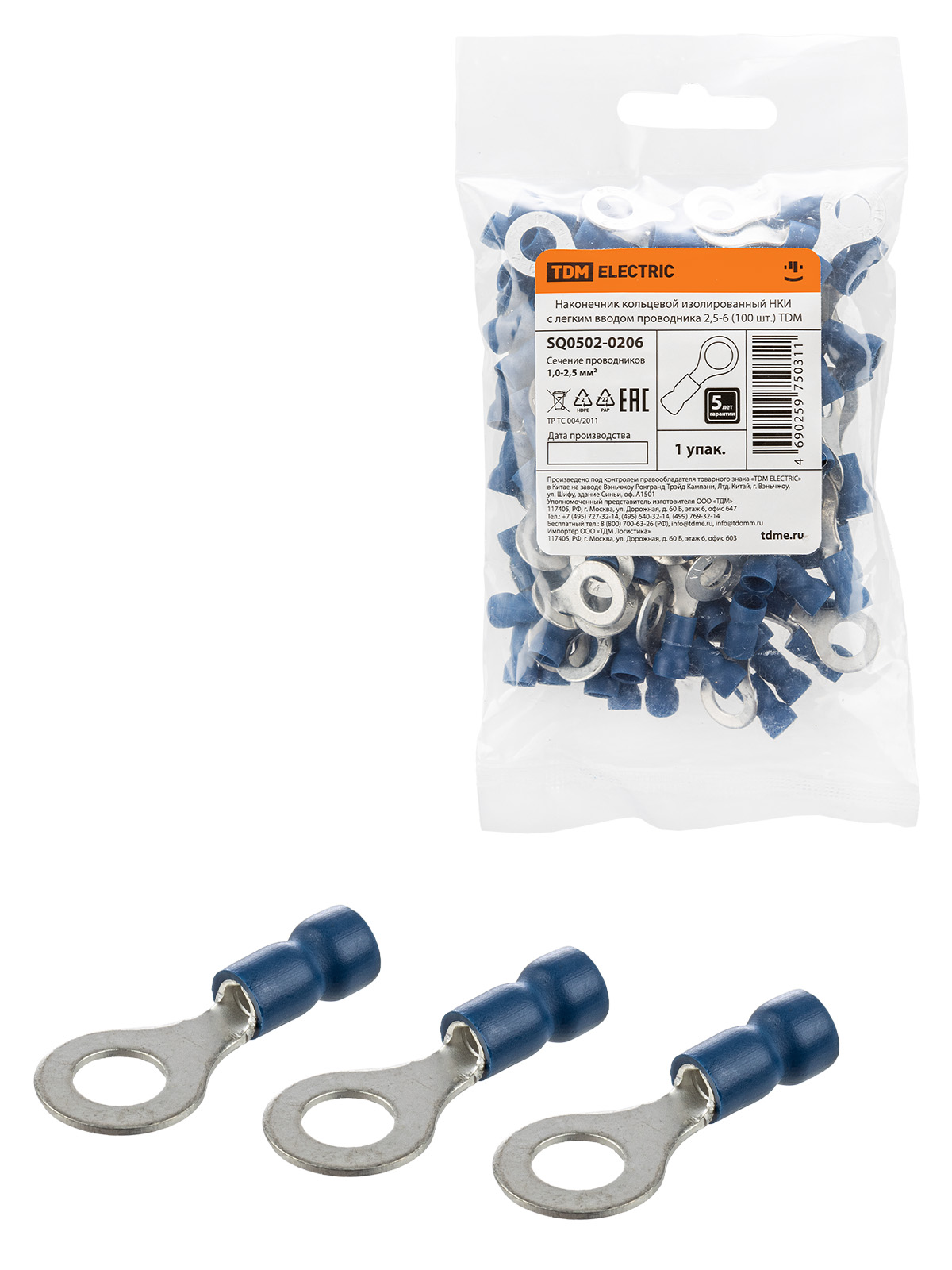 Наименование: Наконечник кольцевой изолированный НКИ с легким вводом проводника 2,5-6 (100 шт.) TDM