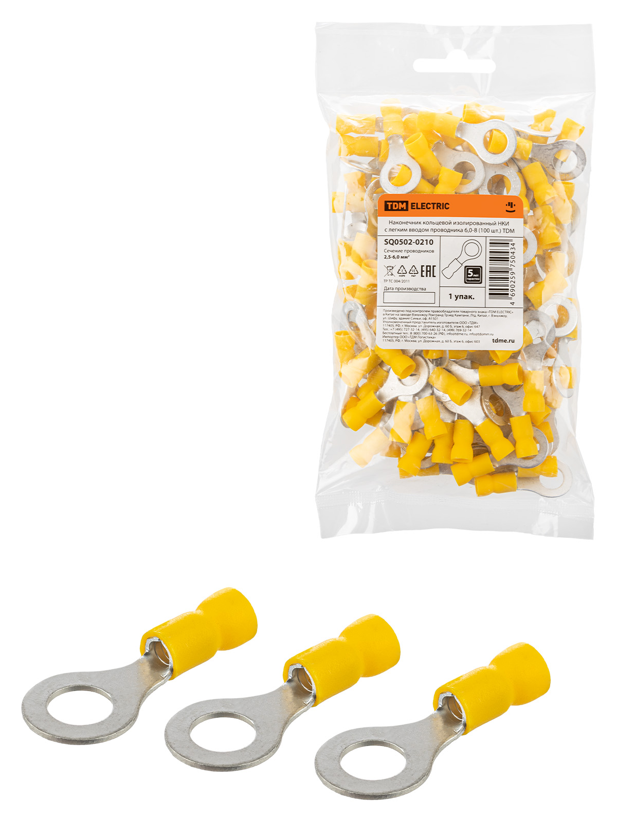 Наименование: Наконечник кольцевой изолированный НКИ с легким вводом проводника 6,0-8 (100 шт.) TDM