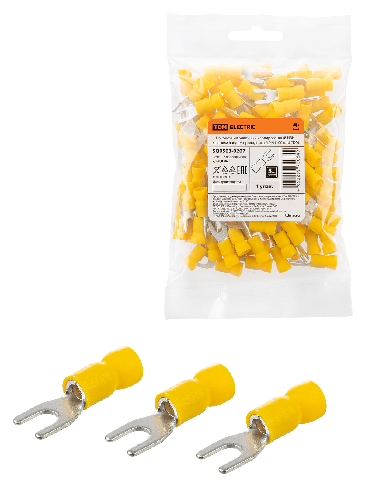 Наконечник вилочный изолированный НВИ с легким вводом проводника 6,0-4 (100 шт.) TDM