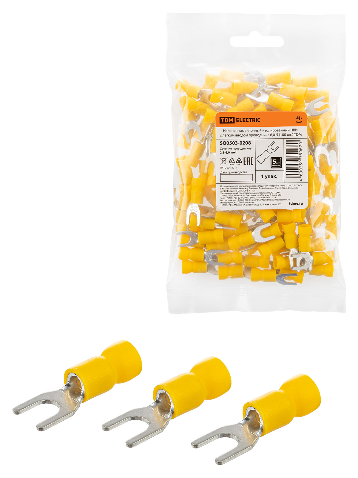 Наконечник вилочный изолированный НВИ с легким вводом проводника 6,0-5 (100 шт.) TDM