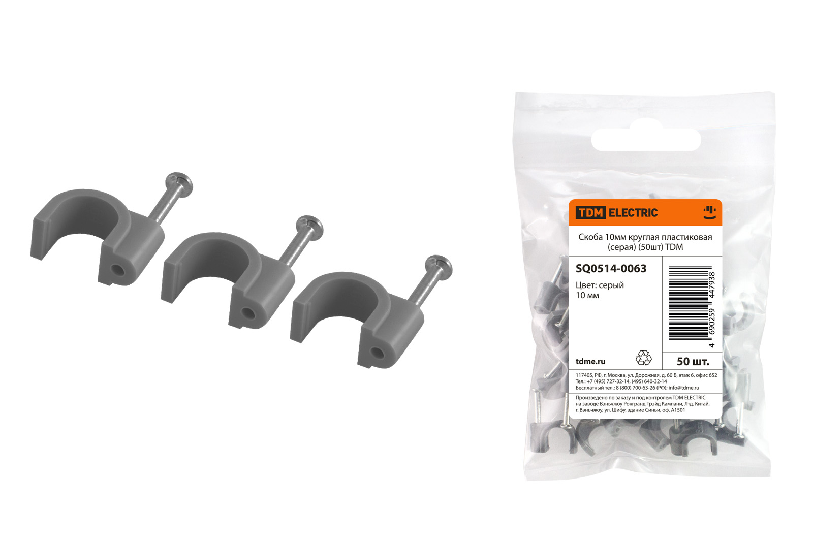 Наименование: Скоба 10мм круглая пластиковая (серая) (50шт) TDM