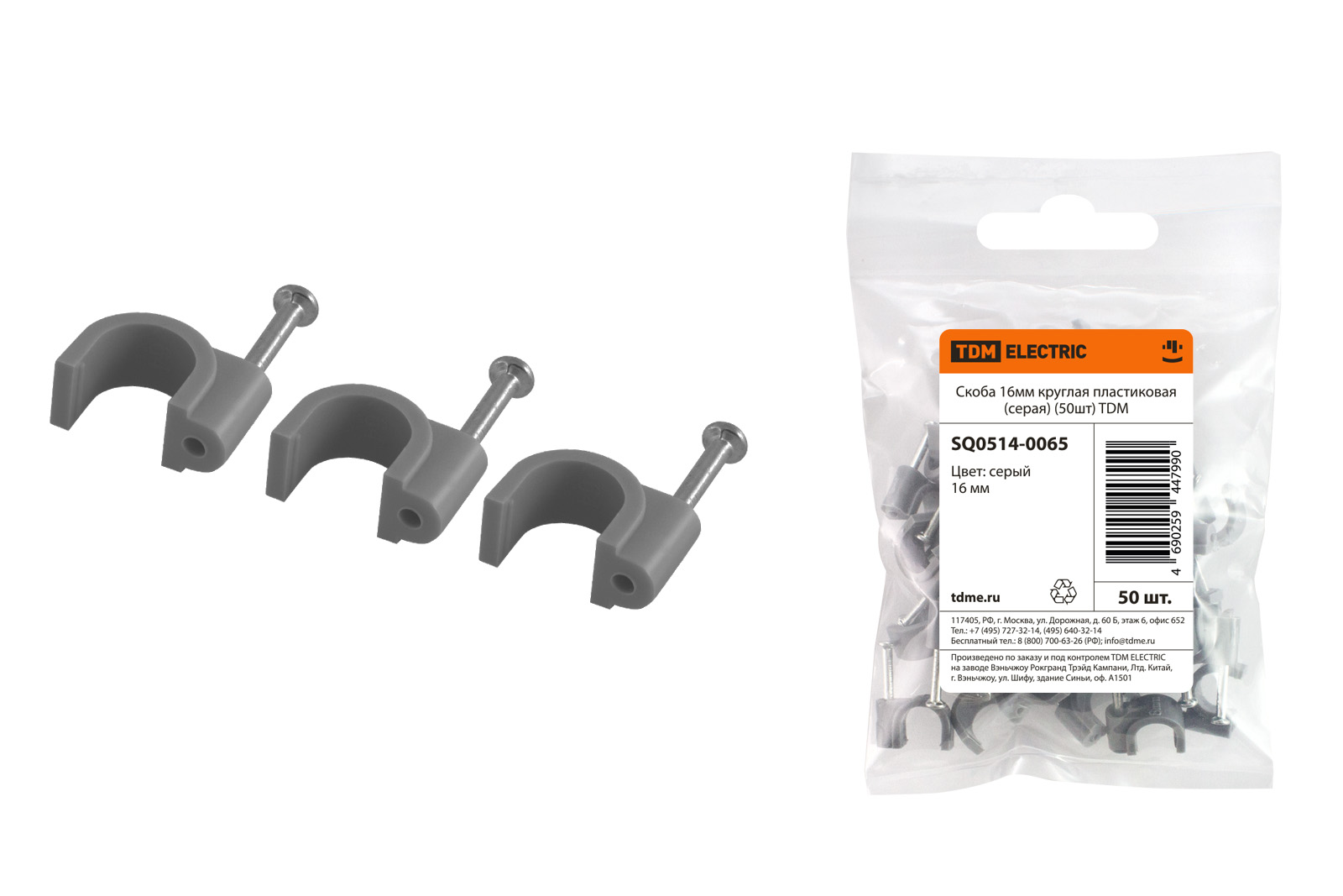 Наименование: Скоба 16мм круглая пластиковая (серая) (50шт) TDM