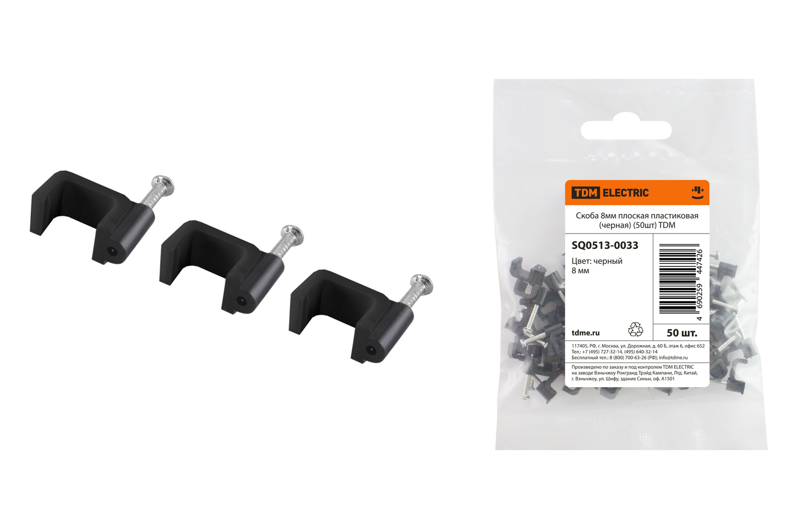 Наименование: Скоба 8мм плоская пластиковая (черная) (50шт) TDM