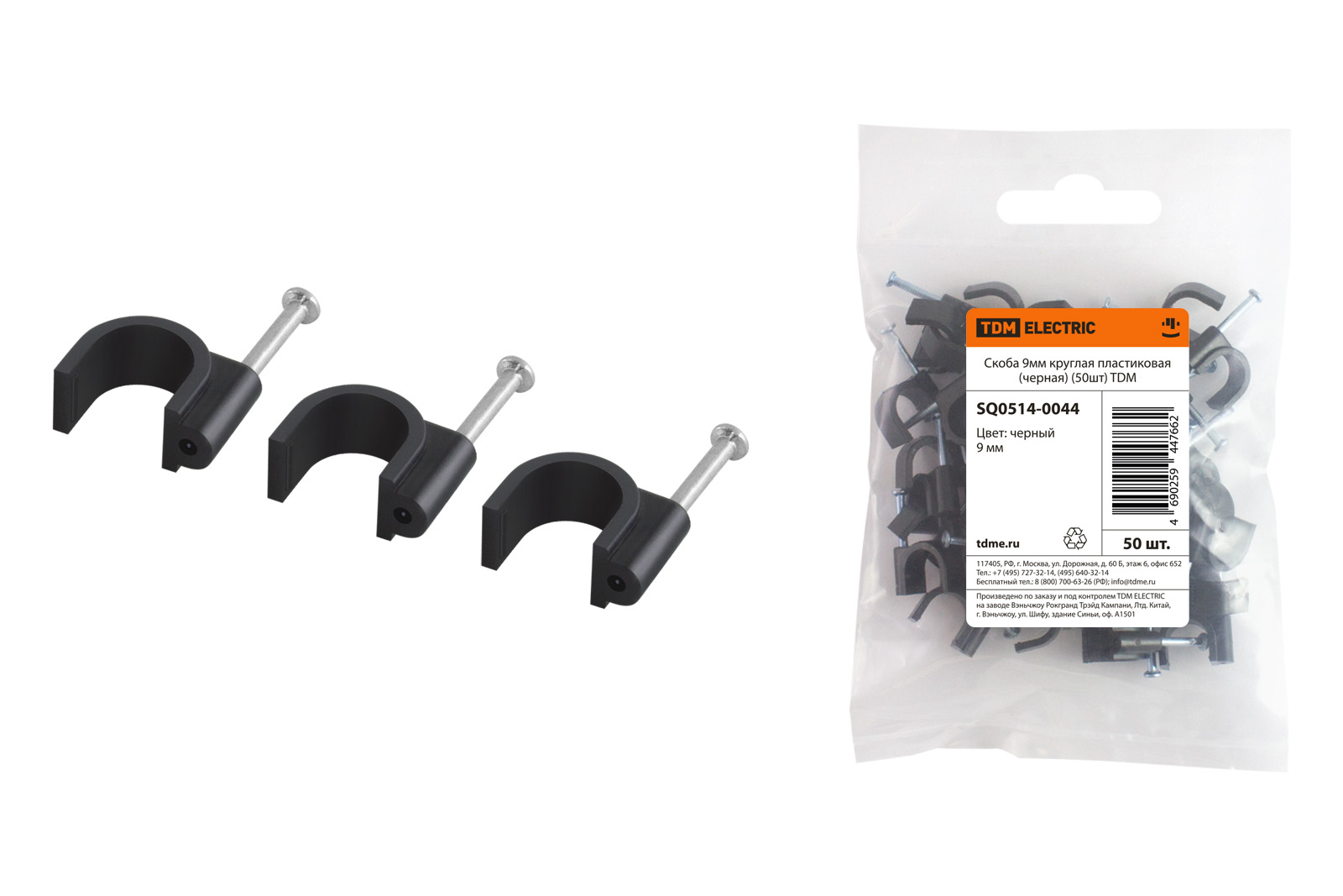 Наименование: Скоба 9мм круглая пластиковая (черная) (50шт) TDM