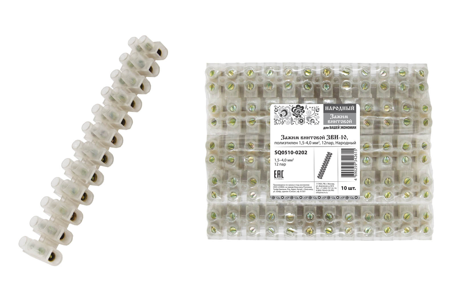 Наименование: Зажим винтовой ЗВИ-10, полиэтилен 1,5-4,0 мм2, 12пар, Народный