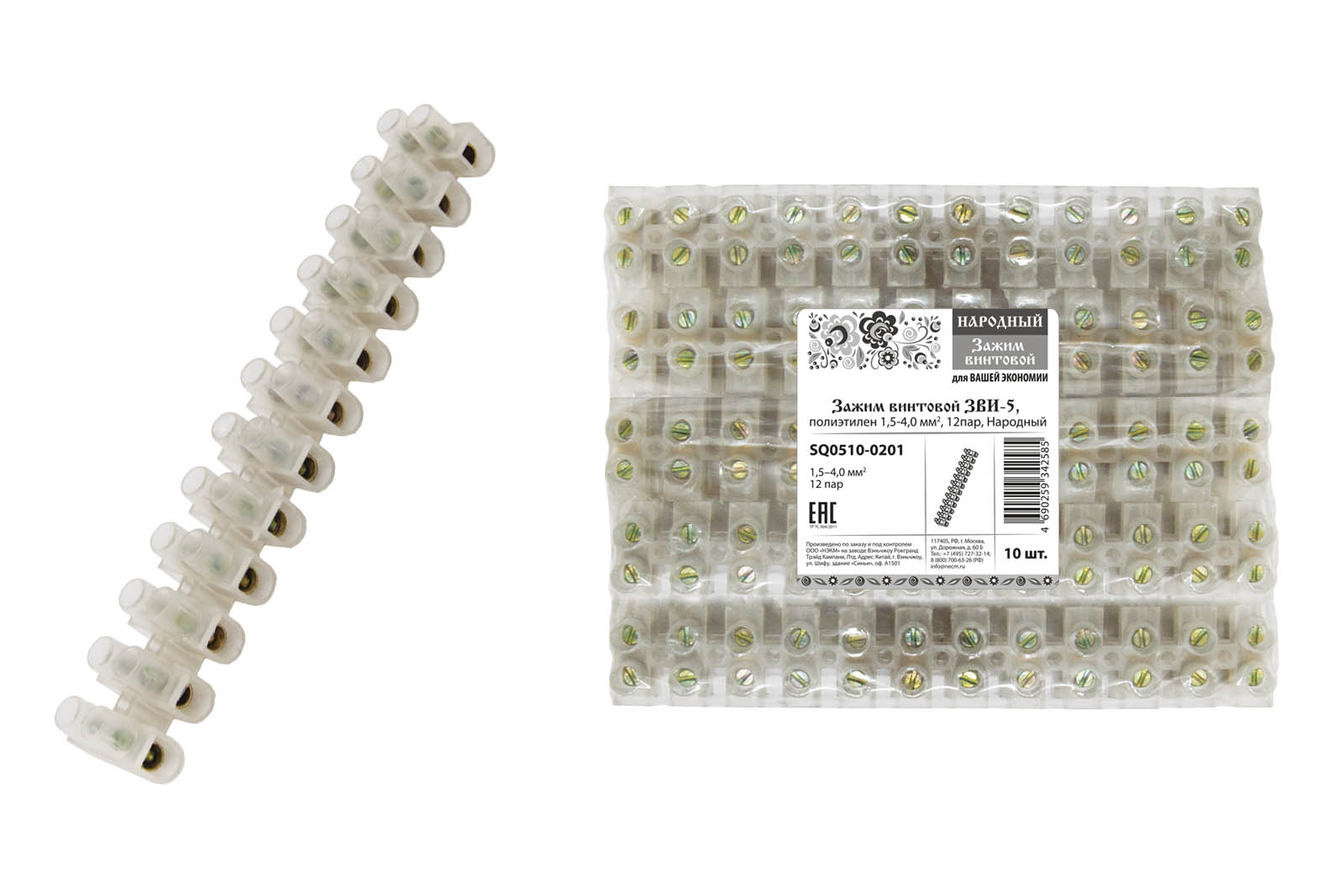 Наименование: Зажим винтовой ЗВИ-5, полиэтилен 1,5-4,0 мм2, 12пар, Народный