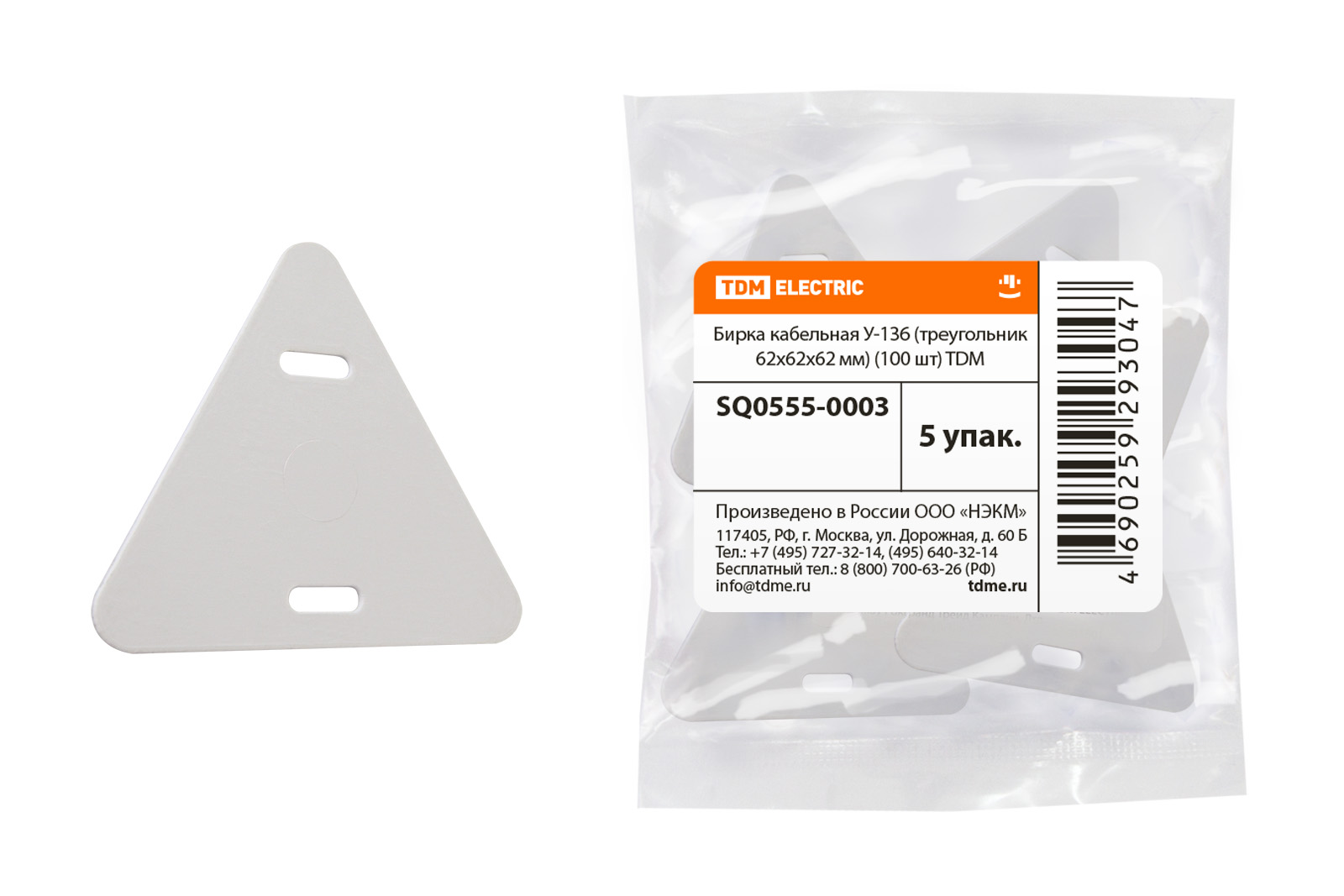 Наименование: Бирка кабельная У-136 (треугольник 62х62х62 мм) (100 шт) TDM