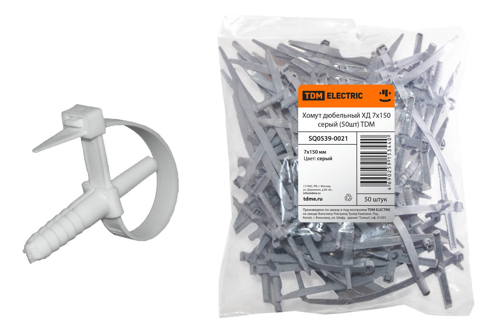 Наименование: Хомут дюбельный ХД 7х150 серый (50шт) TDM