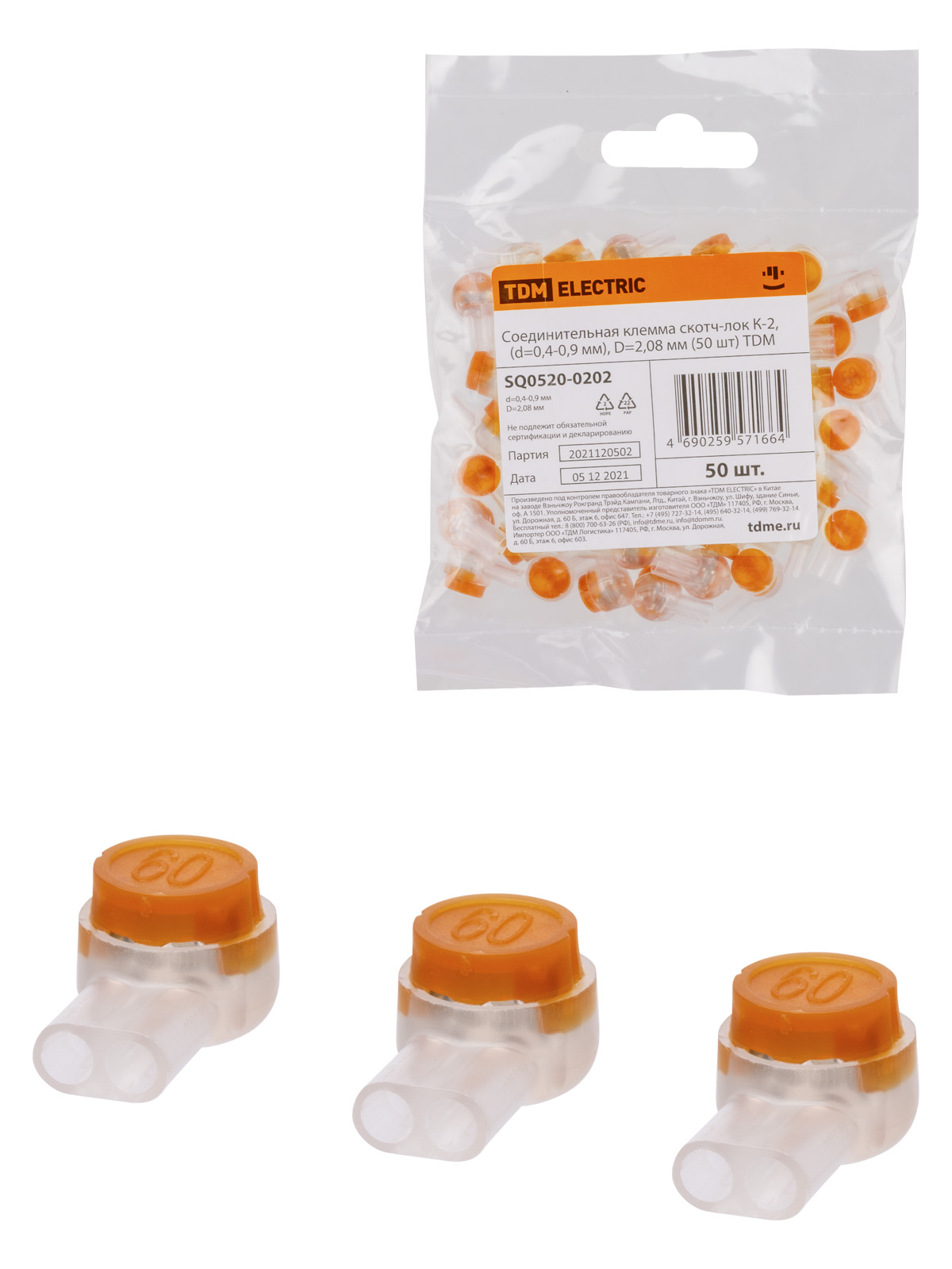 Наименование: Соединительная клемма скотч-лок К-2, (d=0,4-0,9 мм), D=2,08 мм (50 шт) TDM