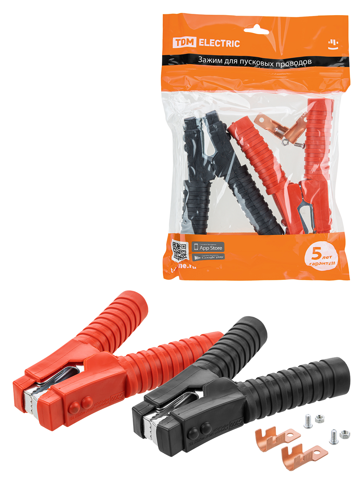 Наименование: Зажим "крокодил" для пусковых проводов 500 А в изоляции (1 красный + 1 черный) TDM