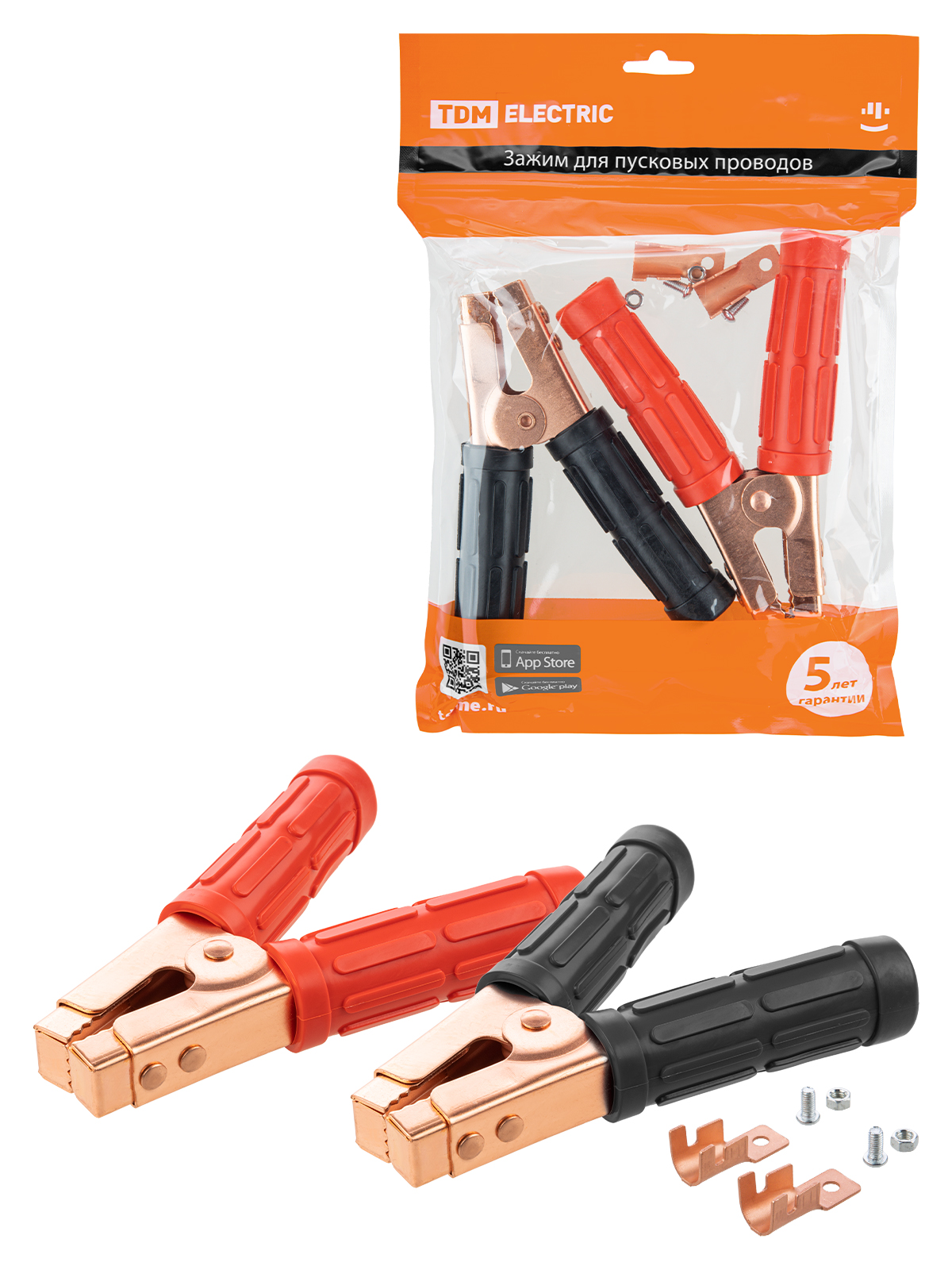 Наименование: Зажим "крокодил" для пусковых проводов 700 А (1 красный + 1 черный) TDM